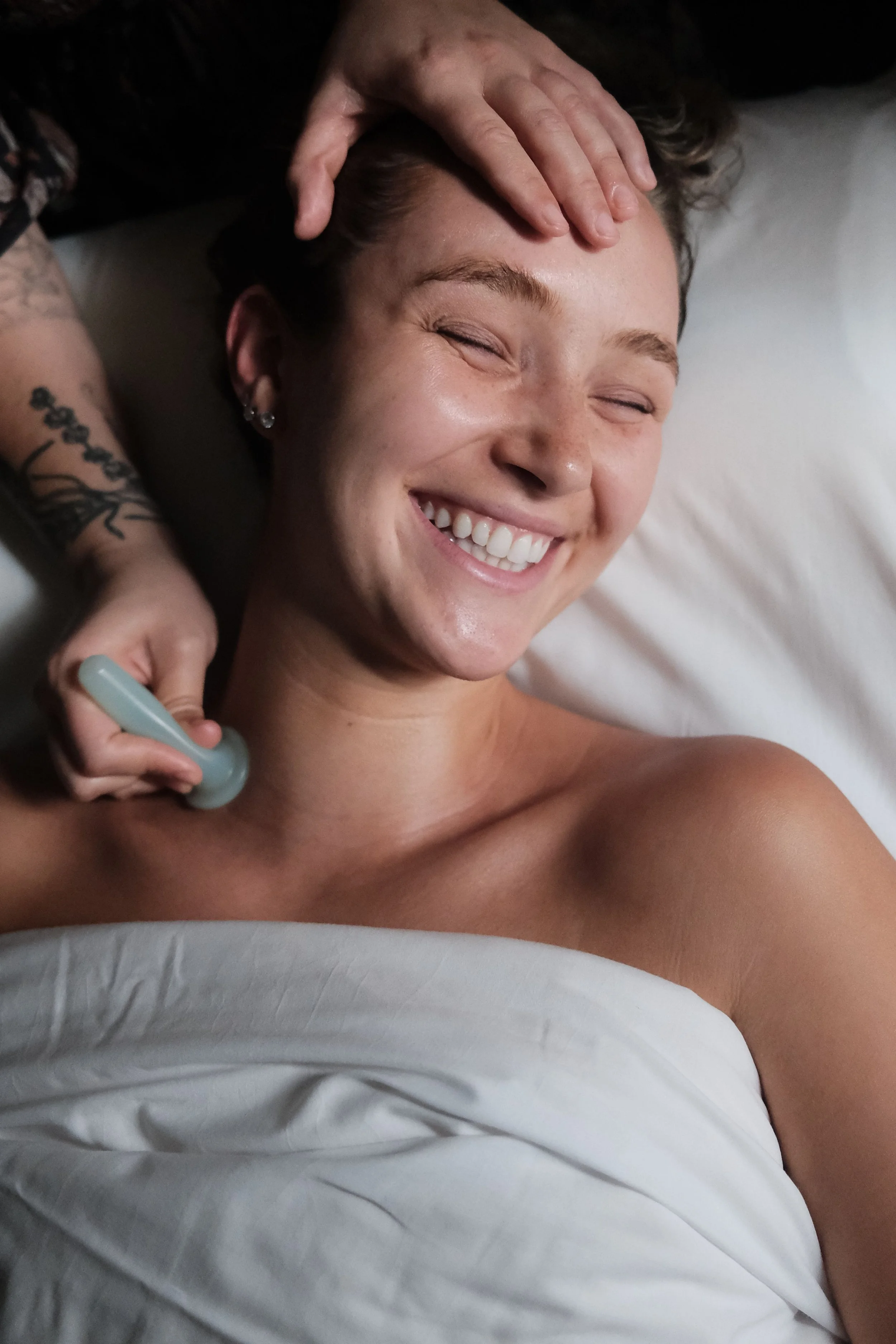 Perfect for those struggling with jaw tension, headaches, or neck pain, this treatment also includes the soothing benefits of facial gua sha to release deep muscle tension, increase circulation, and amplify the sculpting effects.